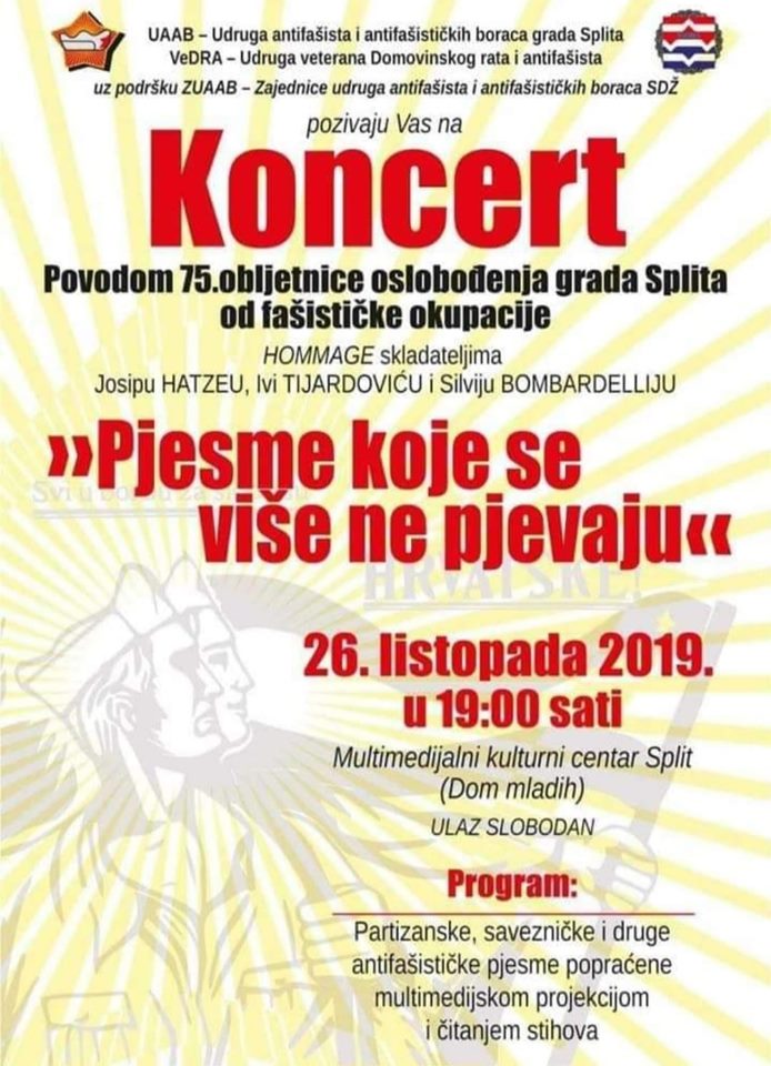 Hrvoje Marušić, predsjednik HSP-a Split, reagirao je na najavu održavanja večerašnjeg koncerta ‘Pjesme koje se više ne pjevaju’, povodom 75. obljetnice oslobođenja grada Splita od fašističke okupacije.
