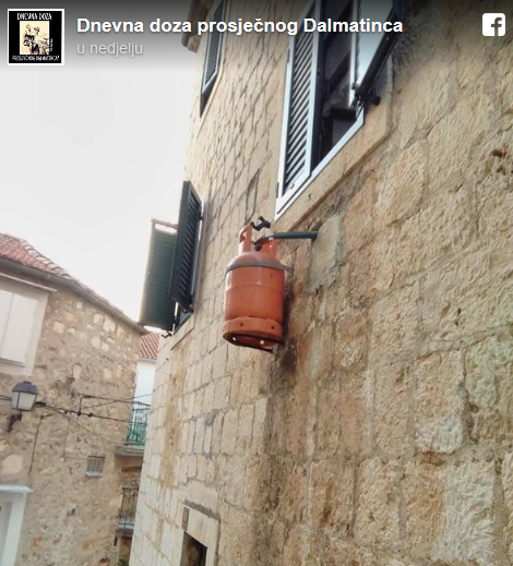 Sudeći prema fotografiji koja je izazvala mnoge reakcije na Facebooku nakon što je objavljena na Dnevnoj dozi prosječnog Dalmatinca, netko na Braču instalirao je plinsku bocu na vanjski zid kuće.