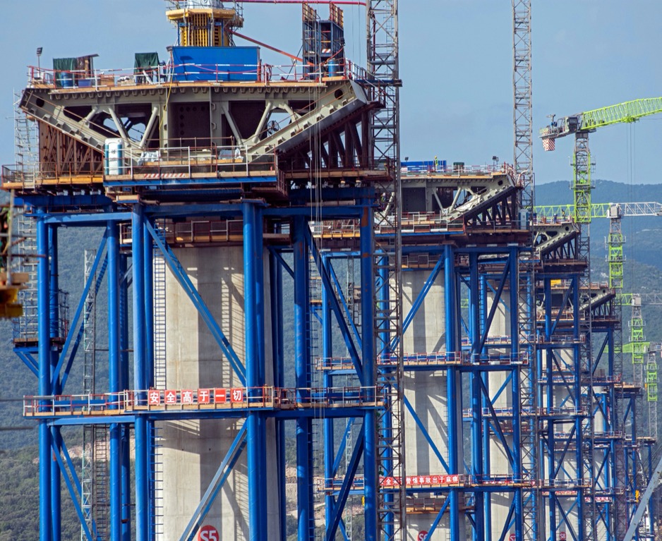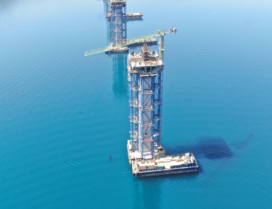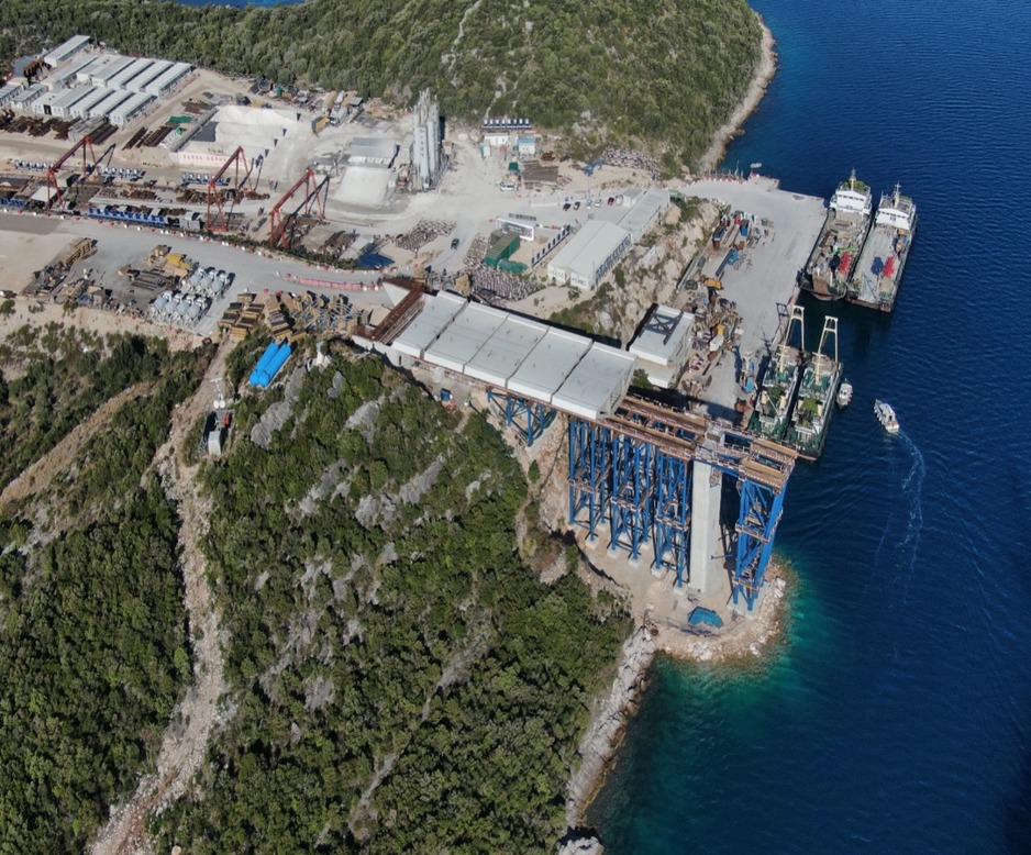 Prema podacima ove javne kompanije dosad je iz mora potpuno izniklo čak 11 od 12 stupova budućeg mosta na kojima je u kolovozu već postavljeno 20 segmenata čelične nosive konstrukcije, a na četiri stupa počela je i gradnja pilona, a počelo je i zavarivanje segmenata.