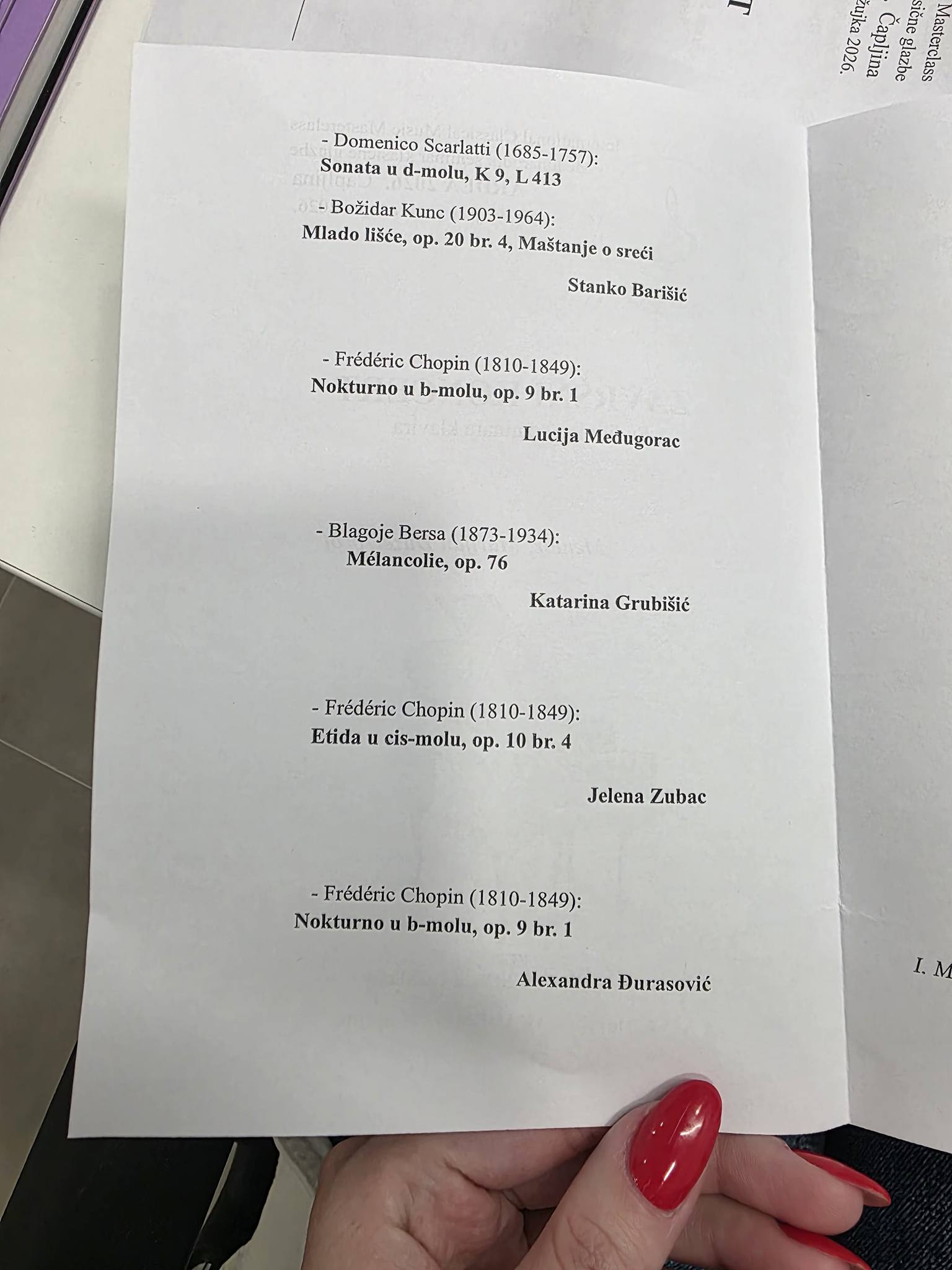 Danas, 02. 03. 2026. godine, također su u rasporedu dva koncerta.