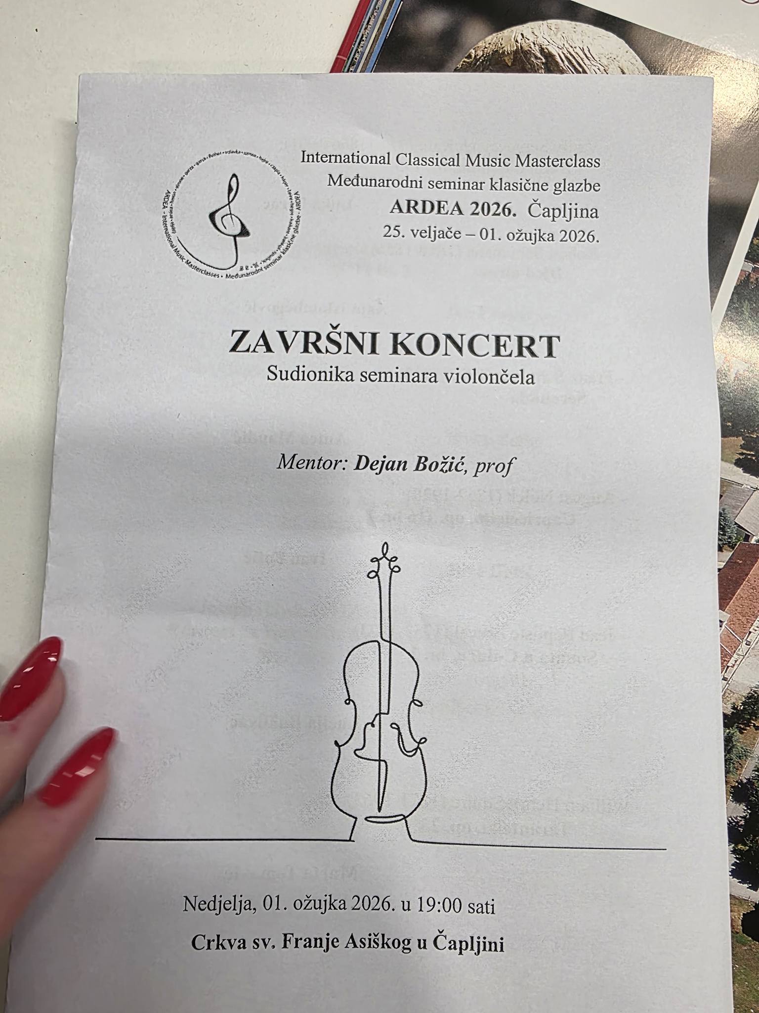 U crkvi svetog Franje Asiškog svoj koncert upriličili su polaznici seminara violončela pod mentorstvom profesora Dejana Božića ili njihovim nastupima, zvucima klavira pratila je profesorica Silvia Vukojević.