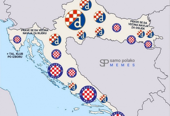 Karta Hrvatske po navijanju za Hajduk i Dinamo
